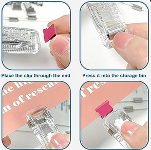 Clip Dispenser Set, MYLERCT Paper Clip Dispenser with 50 Colorful Refill Clips, Reusable, Paper-Friendly, Seamless Stapler for Desk Document Office Home School